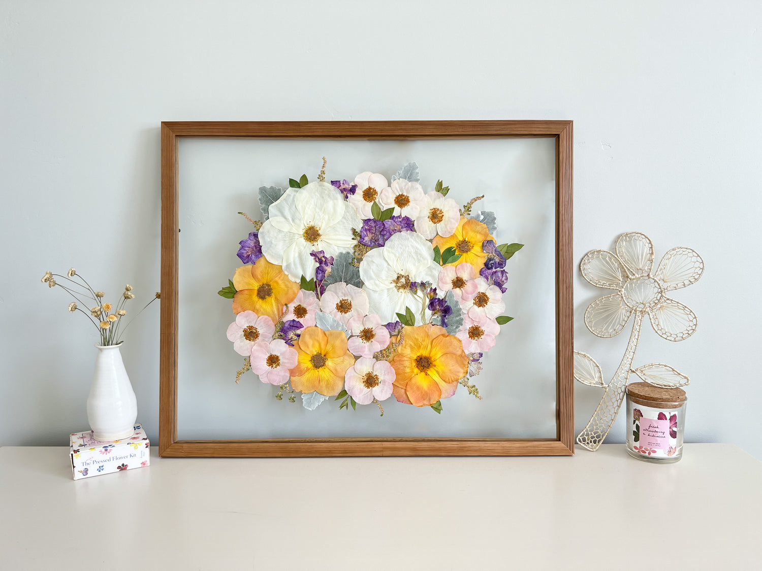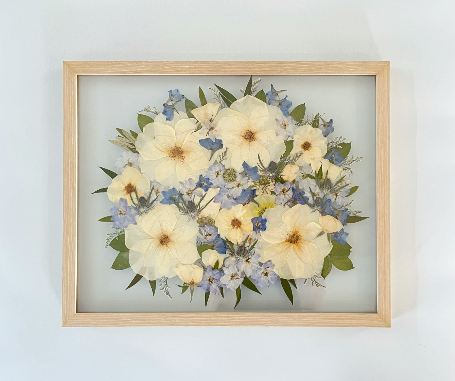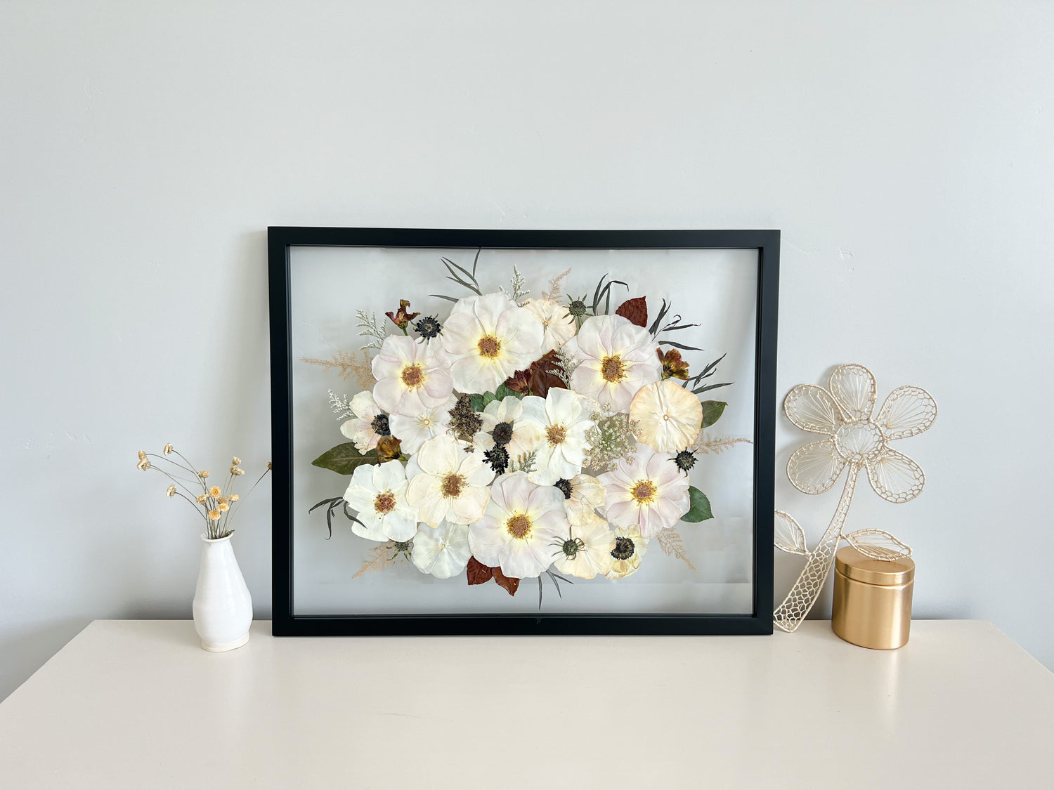 Whether you got married years ago and want your bouquet re-created & pressed, you would like a piece of art made out of your favorite flowers to display in your home, or you would like to have a pressed flower frame made as a gift, The Pressed Flower Co. is here to help!