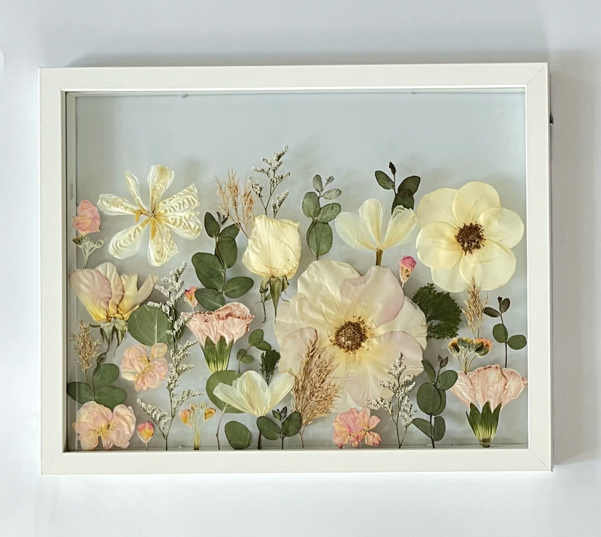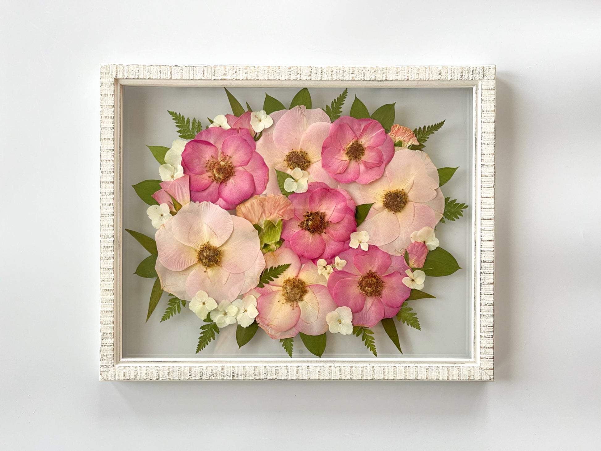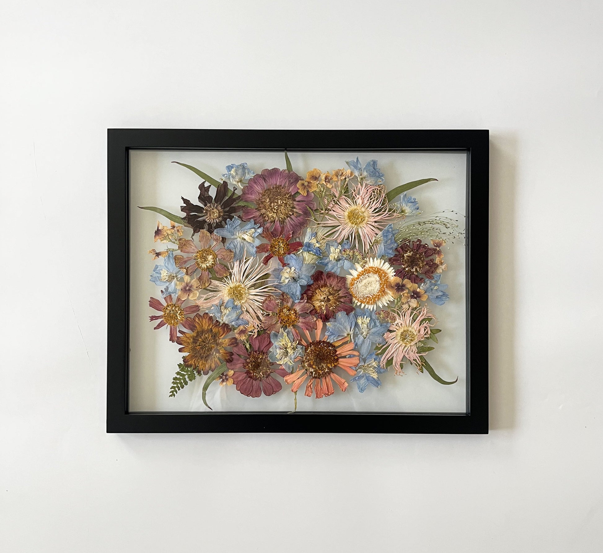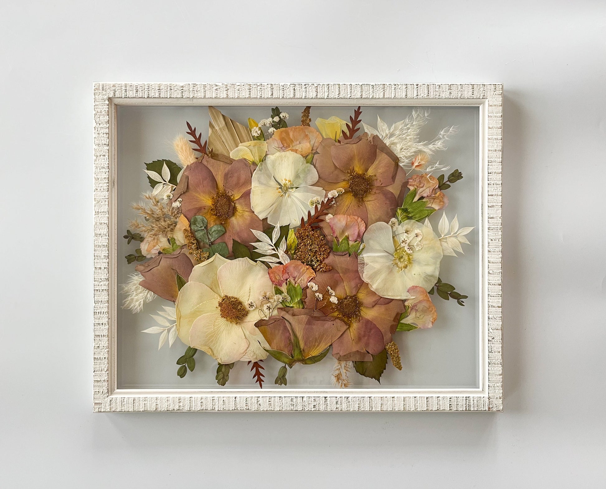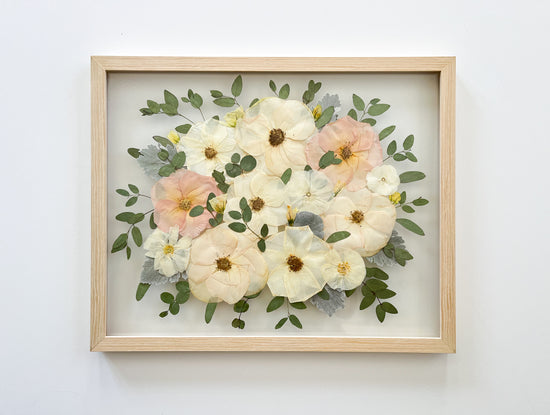 The turnaround time is currently 3-6 months for your bouquet to be pressed, dried and arranged in a beautiful way. On occasion, it may take more or less time than that. This does not include the time to ship the frame back to you if you are out of state. This timeline is necessary to ensure the flowers are completely dry and in the best condition for your special keepsake as well as given the time and attention they need when framing to create a beautiful work of art! I want to give attention to each flower and frame and not rush anything. Can’t wait for you to receive your frame!