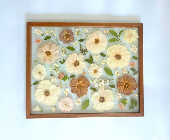 Flowers may change color during the pressing process and will have fading over the years.